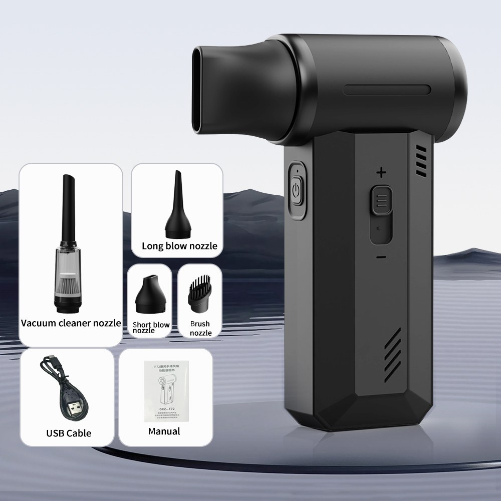 اگر به دنبال یک ابزار قدرتمند، سبک و همهکاره برای تمیز کردن تجهیزات دیجیتال، خودرو، کیبورد، لوازم خانگی و حتی آتشزنی سریع ذغال هستید، مینی جت فن شارژی مدل F72 از برند Violent یک انتخاب بینظیر برای شماست. این دستگاه با طراحی شبیه به یک سشوار مدرن، اما بسیار قویتر و با قابلیت دمندگی بالا، در خانه، محل کار، خودرو و فضای باز کاربرد دارد.