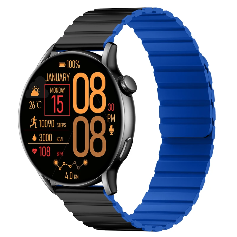 ساعت هوشمند گلوریمی مدل M2 MAX، با طراحی پویا و قابلیتهای فراوان، به عنوان یک ابزار روزمره برای زندگی شما طراحی شده است. این ساعت، با فرم دایرهای و بدنه آلومینیومی مقاوم، ظاهری حرفهای و ورزشی دارد که برای مناسبتهای مختلف مناسب است. بند سیلیکون قابل تعویض آن، به کاربران اجازه میدهد تا طبق نیاز خود، ظاهر ساعت را تغییر دهند. صفحه نمایش AMOLED 1.6 اینچی این ساعت، با رزولوشن 480×480 و روشنایی 1350 نیت، تصاویر رنگی و واضحی را نمایش میدهد. صفحه لمسی با نرخ تازهسازی 60 هرتزی، تجربه کاربری را بهبود میبخشد. این ساعت از GPS برای مکانیابی دقیق استفاده میکند و با سیستمعاملهای اندروید 5.0 و iOS 9.0 و بالاتر سازگار است. قابلیت ذخیرهسازی موسیقی، تصویر و صدا در حافظه داخلی 4 گیگابایتی این ساعت، به کاربران امکان استفاده مستقل از دستگاه همراه را میدهد. پشتیبانی از بلوتوث 5.3 و مقاومت در برابر نفوذ آب با استاندارد IP68، این ساعت را برای استفاده در شرایط مختلف مناسب میسازد. حسگرهایی مثل شمارنده ضربان قلب، سنجش اکسیژن خون (SPO2)، و گام شمار، به دنبال کردن سلامت کاربران کمک میکند. با ظرفیت باتری 360 میلیآمپر ساعت، این ساعت تا 20 روز بدون شارژ قابل استفاده است.